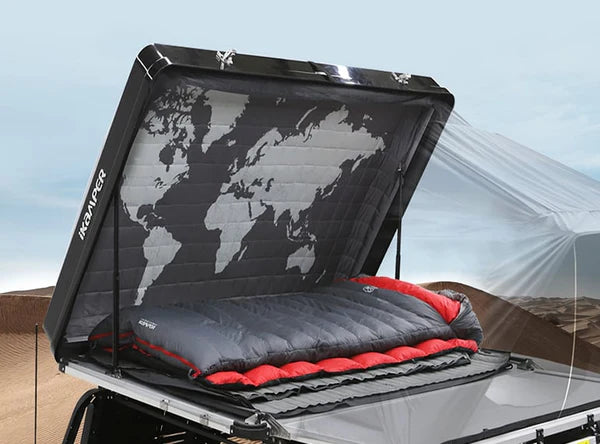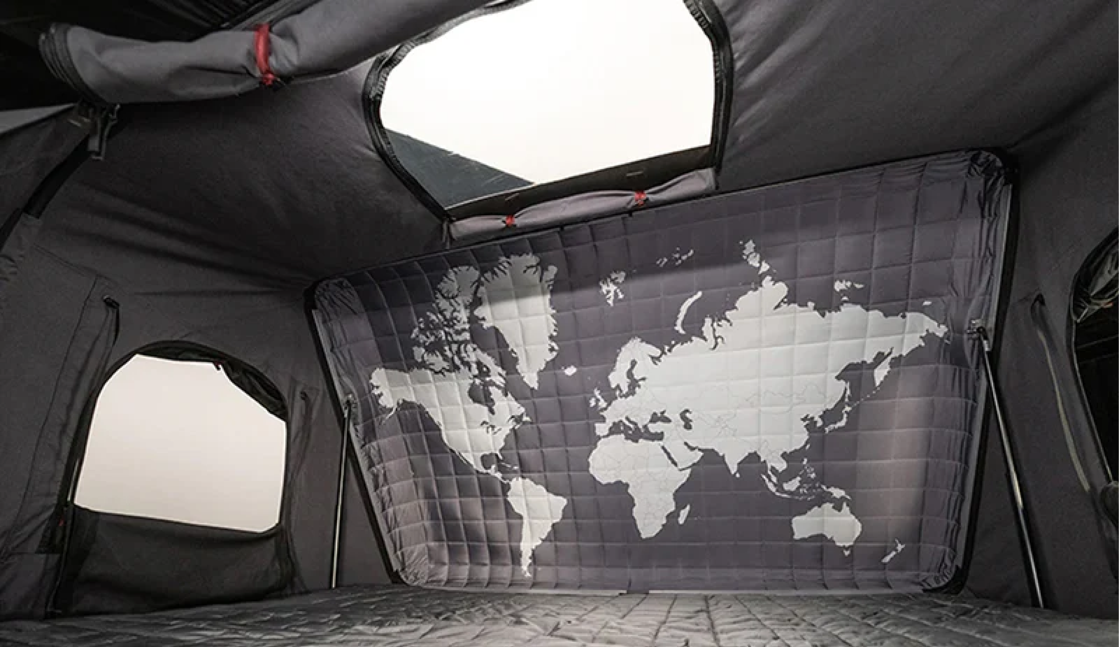The aluminum floor panel folds out to provide a roomy sleepijng arrea. You won't find another hards shell roof top tent that balances comfort and space quite like this.