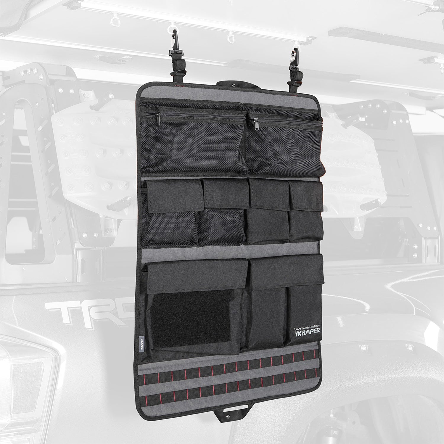 Featuring six multi-purpose pockets, breathable mesh compartments, and a MOLLE system for customization, it keeps essentials within reach. Made from rugged 600D Oxford polyester, it easily attaches to your RTT accessory rail, vehicle headrest, or other secure points.