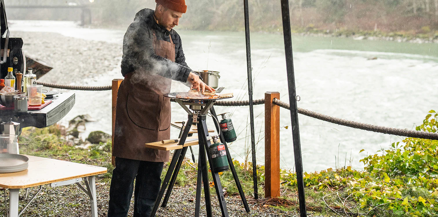 The Propane Adapter screws onto the bottom of the AIOKS stove and tuck away inside your AIOKS storage bin when you’re finished. For the Disco Stove, it's just as simple: just screw the Propane Adapter on.